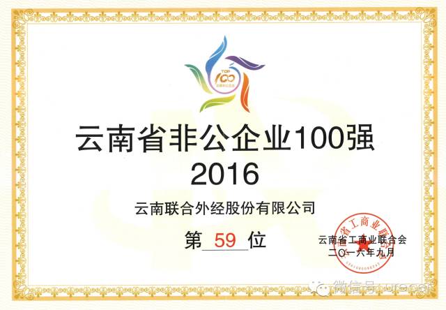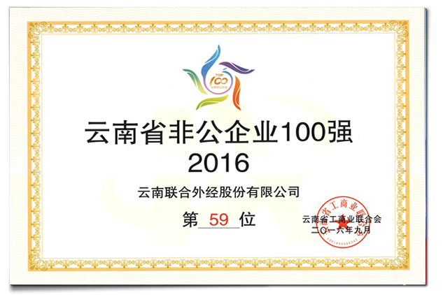 聯(lián)合外經再度入選云南省非公企業(yè)100強