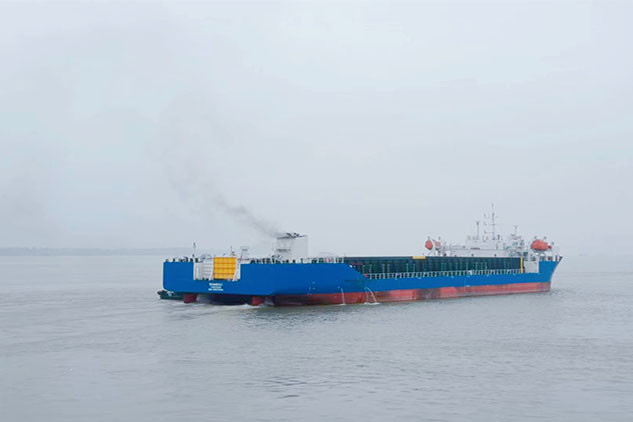 2023年8月14日上午,云南能投聯(lián)合外經(jīng)股份有限公司與江蘇正嶼船舶重工有限公司合作建造的一艘9500載重噸級甲板運(yùn)輸船在江蘇正嶼船廠揚(yáng)州碼頭向印尼承租方成功交付。該船舶總長99米,型寬28米,型深7米,載重量為9500噸,船舶設(shè)計建造既符合印尼海運(yùn)市場的最新趨勢,又可提升承租人未來在市場的運(yùn)力水平,為穩(wěn)定其下游企業(yè)生產(chǎn)運(yùn)輸提供了有力保障。與國際同類型船舶相比,該船舶在性能參數(shù)上具有明顯的優(yōu)勢,浮心及重心匹配的同時減少了壓載水的裝載,該技術(shù)有效體現(xiàn)了綠色節(jié)能,低碳環(huán)保,提升運(yùn)營效率等特點(diǎn),順應(yīng)了航運(yùn)業(yè)綠色、低碳、智能的發(fā)展趨勢。