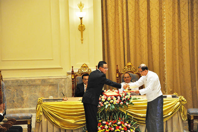 President Guan and the representative of Myanmar signed the agreement under the witness of the leaders of both China and Myanmar.